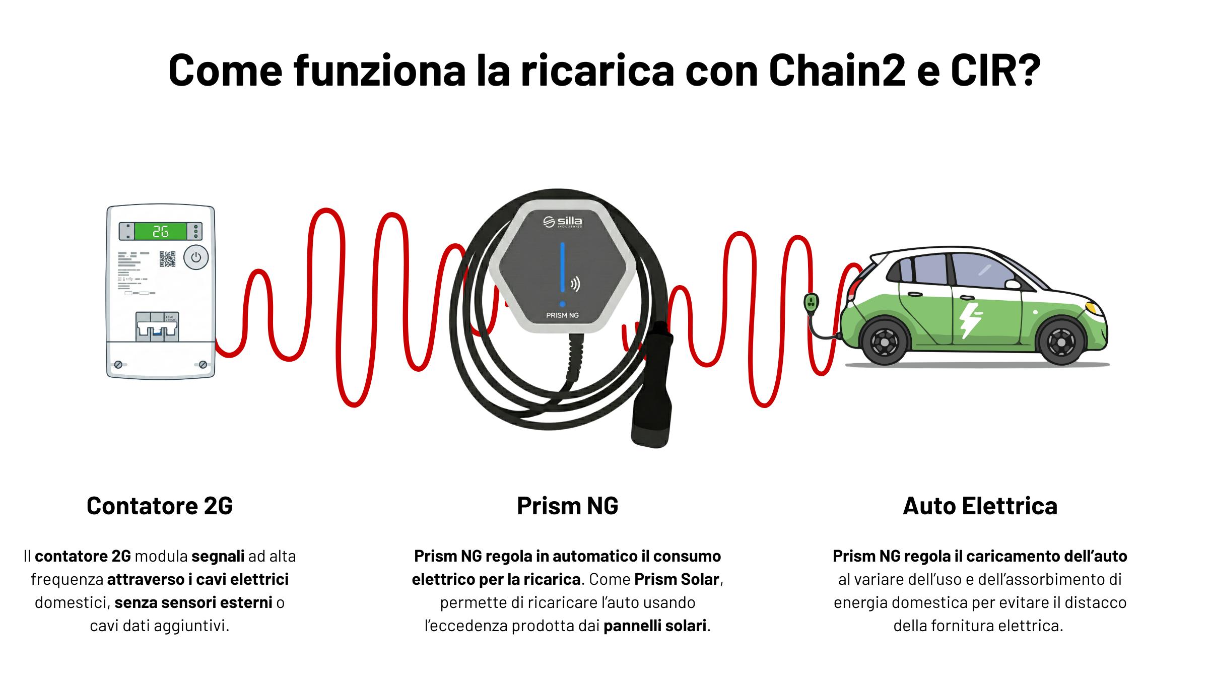 Prism NG è la postazione di ricarica di nuova generazione in linea con i nuovi standard del settore. Integra nativamente il protocollo Chain2 e il CIR per dialogare direttamente con il contatore tramite l’impianto elettrico esistente, eliminando la necessità di cablaggi aggiuntivi per i tradizionali sensori.